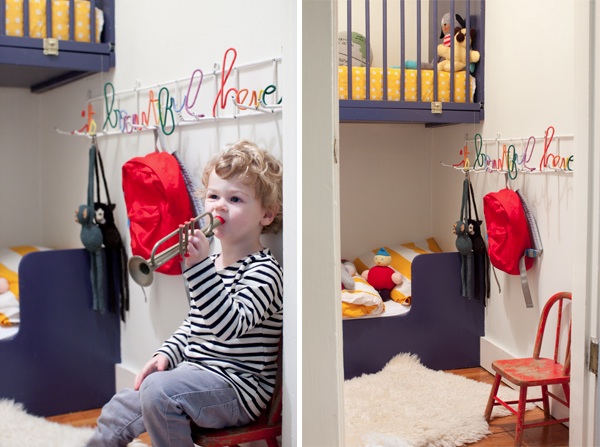 Kids can share a room, I swear. As a mom to 3 kids, I tell you, most people think you are crazy for having any of them share a room. That is except my friends with 4 or 5 kids. They get it. Sharing a room isn’t a big deal. I love that three three boys are sharing this room too. The rope bunk beds are anchored into the wall and create a really fun place to help sharing a room be really fun!
