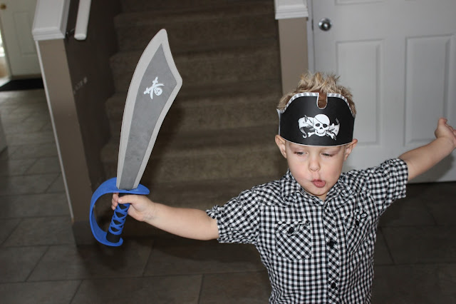 I spent the morning making eye patches for all the kids to dress up, but when it came for party time, nobody wanted to wear them! The swords are from the dollar store, and serve dual purpose of entertainment and take home gift / loot bags. I didn’t plan a lot of activities, just cupcakes, jumping on the tramp with the swords, and presents. Everybody had fun, including the non stressed parents, which is always a win in my books!